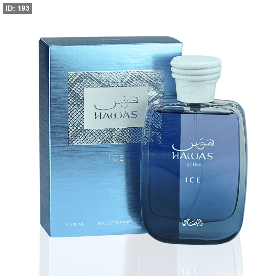 Hawas Ice for Him Rasasi عطر أروماتك للرجال . هذا عطر جديد Hawas Ice for Him صدر عام 2023. إفتتاحية العطر التفاح, الليمون الإيطالي, البرغموت الصقلي و الينسون النجمي; قلب العطر البرقوق, زهر البرتقال و الهيل; قاعدة العطر تتكون من المسك, العنبر, الطحالب و الأخشاب الطافية