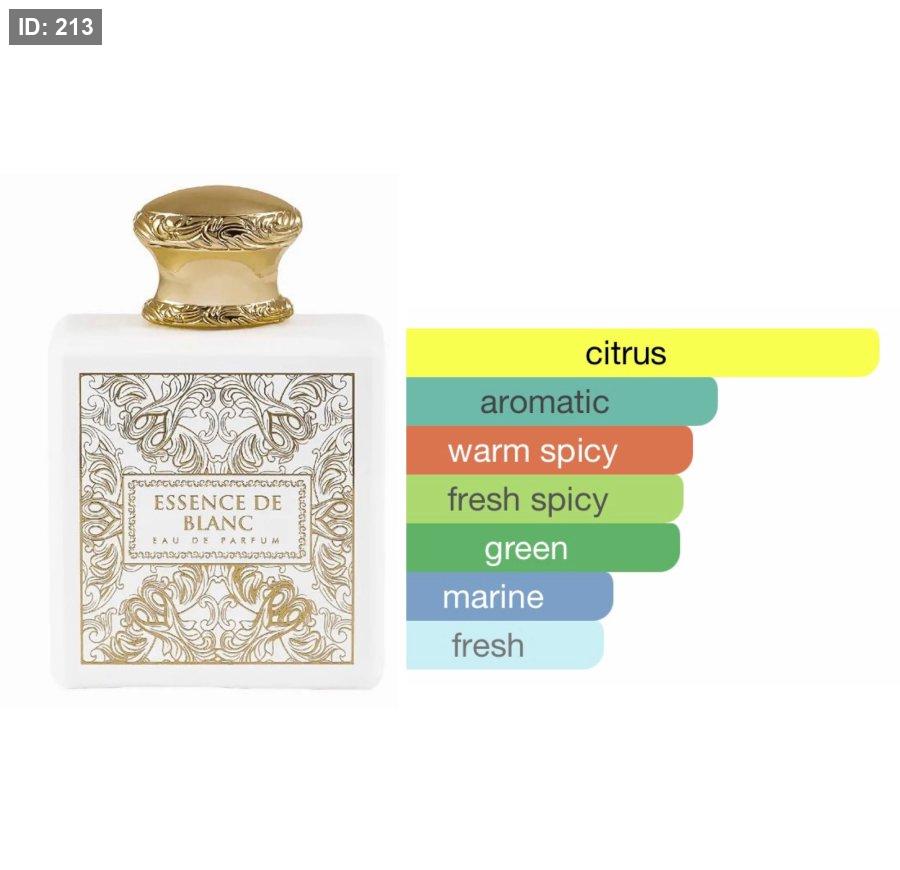 Essence de Blanc French Avenue عطر أروماتك للجنسين. Essence de Blanc صدر عام 2022. إفتتاحية العطر البيتيتغرين, البرغموت, الحمضيات و البرتقال; قلب العطر الزنجبيل, النعناع و رائحه التوابل; قاعدة العطر تتكون من زهور شفافة, ملاحظات مائية و الآمبرغريس