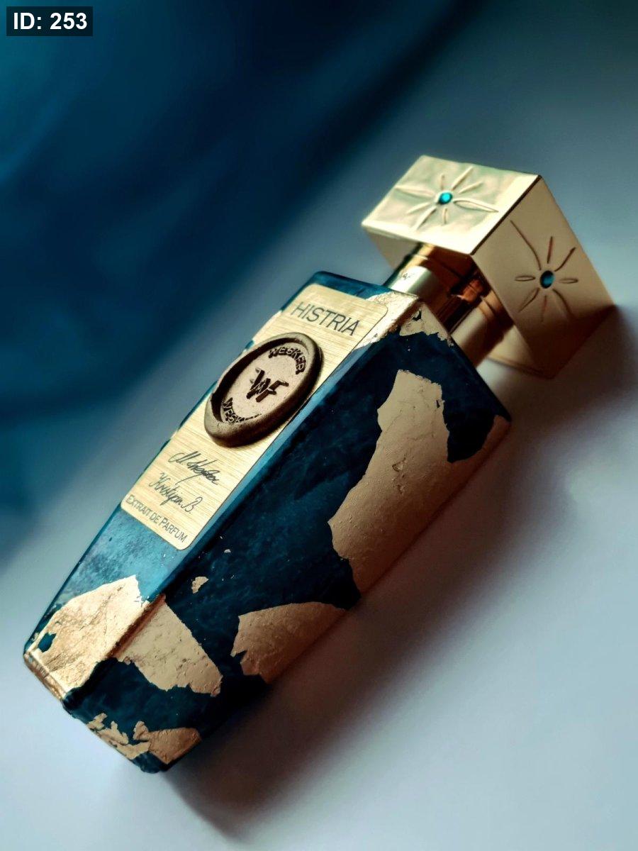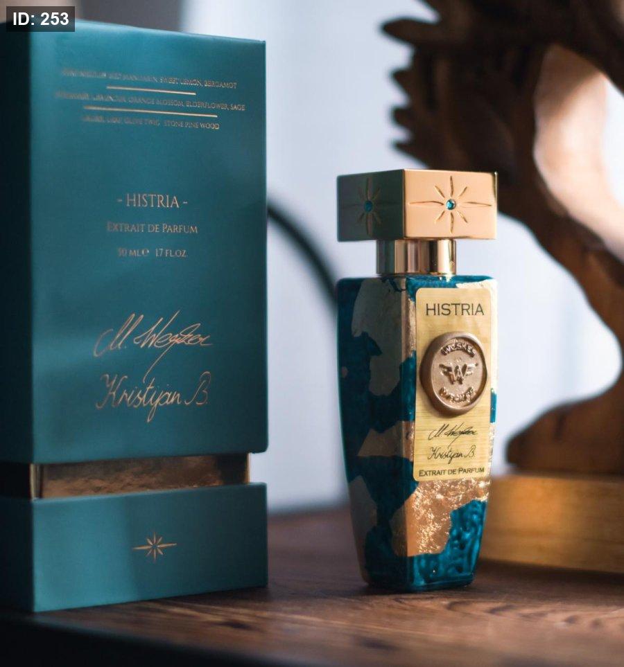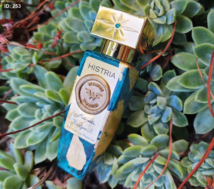 Histria Wesker عطر أروماتك - عشبي للجنسين. Histria صدر عام 2021. إفتتاحية العطر أشواك الصنوبر, الليمون, البرغموت و الماندرين الأحمر; قلب العطر الخزامي, زهر البرتقال, إكليل الجبل, المريمية و خمان أسود; قاعدة العطر تتكون من حجر, أشجار الصنوبر و ورق اللورا.