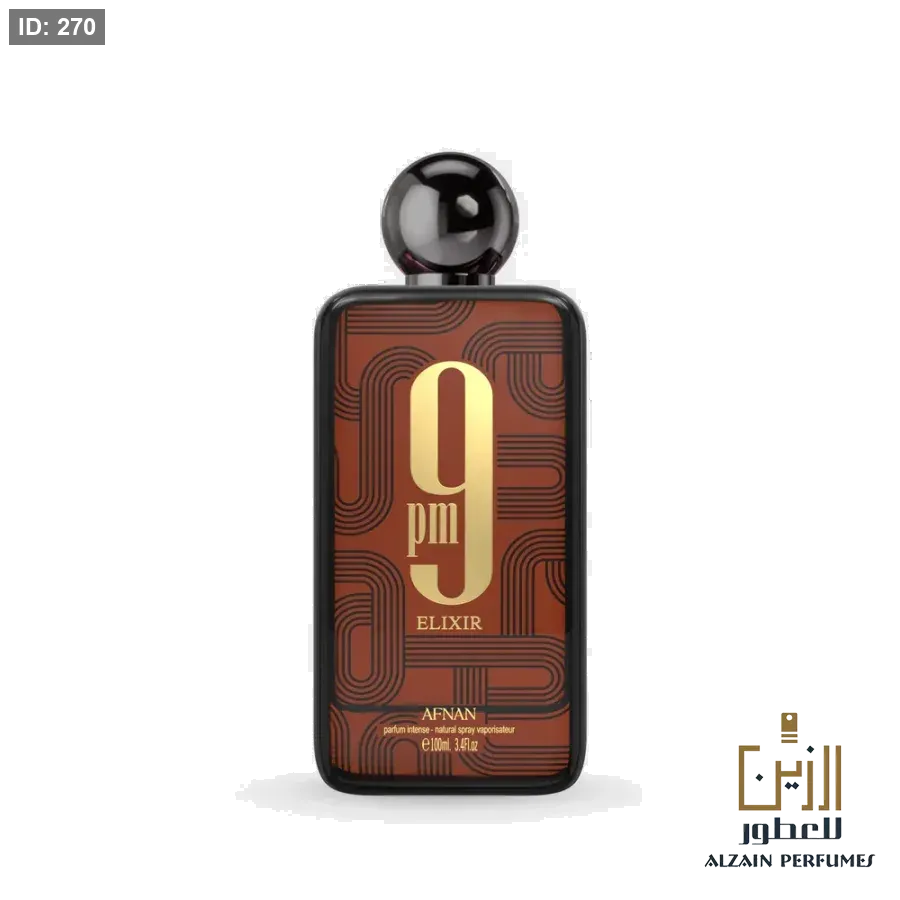 9PM Elixir Afnan عطر شرقي - حار للجنسين. هذا عطر جديد 9PM Elixir صدر عام 2025. إفتتاحية العطر الهيل, جوزه الطيب و الإليمي; قلب العطر الفلفل الحلو الاسباني, الجلود و الخزامي; قاعدة العطر تتكون من الفانيليا, الباتشولي, اللابدانوم و الورد الصخري.
