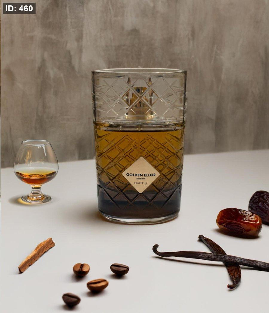 Golden Elixir Reserve Riiffs Perfumes عطر شرقي - حار للجنسين. هذا عطر جديد Golden Elixir Reserve صدر عام 2024. إفتتاحية العطر القرفة, الكونياك, القهوه و الهيل; قلب العطر حبوب التونكا, حلوي اللوز و التمر/البلح; قاعدة العطر تتكون من الفانيليا, العود و المسك.