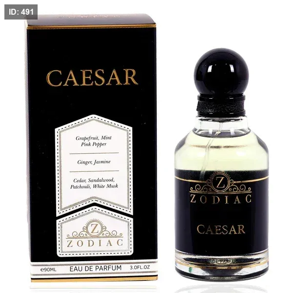 Caesar Eau de Parfum Zodiac عطر خشبي - حار للرجال . Caesar Eau de Parfum صدر عام 2022. إفتتاحية العطر الفلفل الوردي, الجريب فروت, الكزبرة, الألدهيدات, البرغموت, الليمون و النعناع; قلب العطر الياسمين, جوزه الطيب, الزنجبيل و شمام; قاعدة العطر تتكون من خشب الصندل, الباتشولي, خشب العنبر, اللابدانوم, البخور, خشب الأرز و العنبر.