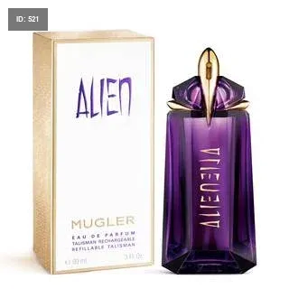 Alien Mugler عطر شرقي - خشبي للنساء . Alien صدر عام 2005. Alien من توقيع Dominique Ropion و Laurent Bruyere. إفتتاحية العطر ياسمين سامباك ; قلب العطر أخشاب الكشمير; قاعدة العطر من العنبر.