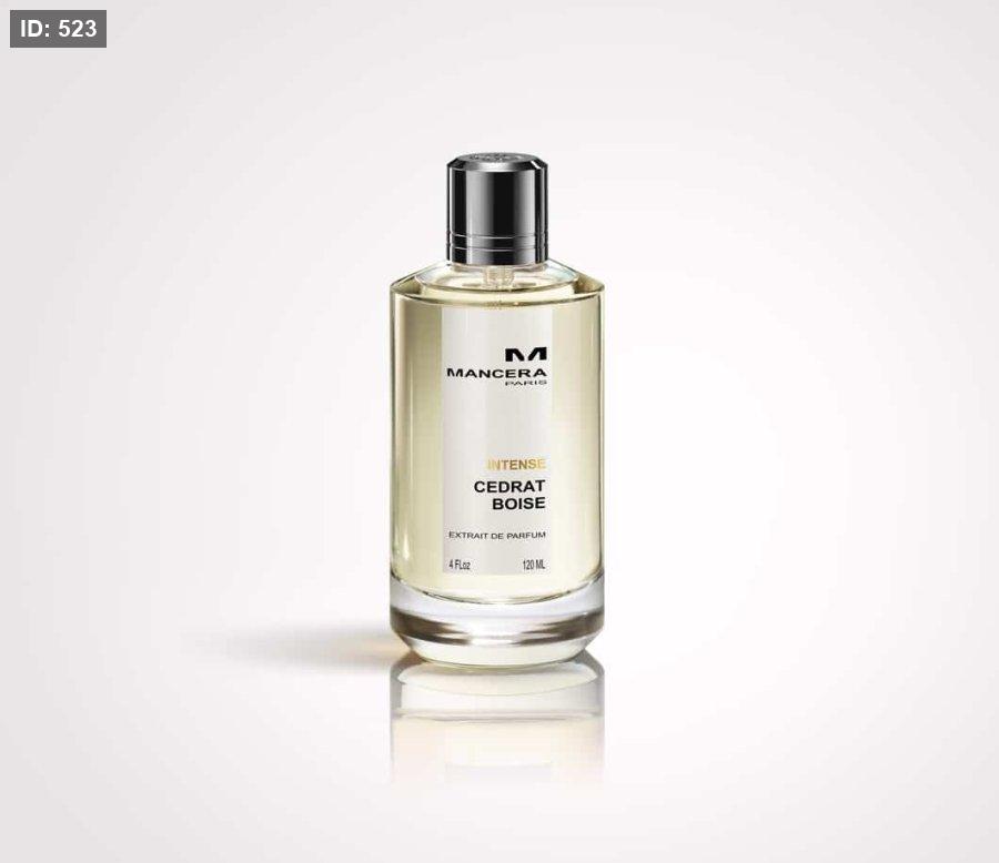 Intense Cedrat Boise Mancera عطر شرقي - خشبي للرجال . Intense Cedrat Boise صدر عام 2021. إفتتاحية العطر الحمضيات الصقلية, الكشمش الأسود و التوابل; قلب العطر الجلود, خشب الصندل الأبيض, العود الكمبودى, أوراق الباتشولي و الياسمين; قاعدة العطر تتكون من الآمبرغريس, طحلب البلوط (طحلب السنديان), المسك الأبيض و الفانيليا.