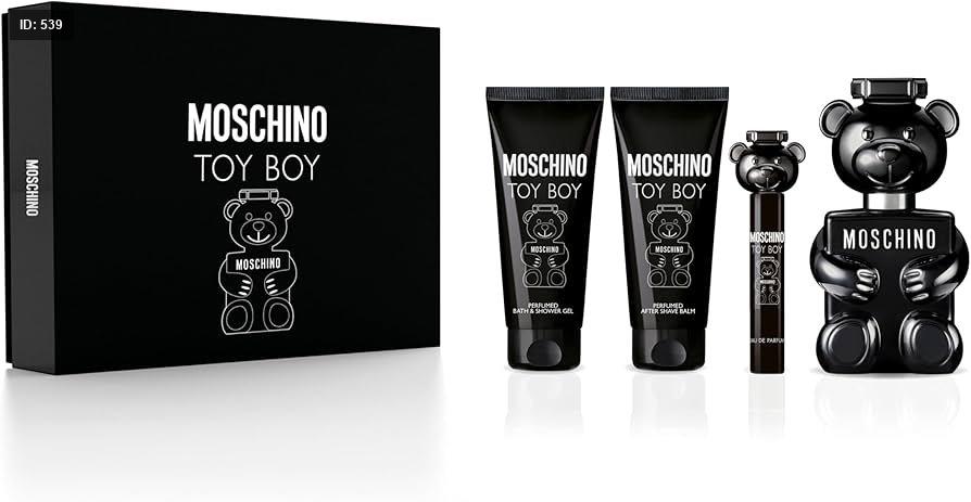 Toy Boy Moschino عطر خشبي - حار للرجال . Toy Boy صدر عام 2019. Yann Vasnier قام بتوقيع هذا العطر. إفتتاحية العطر الفلفل الوردي, الكمثري, جوزه الطيب الإندونيسيه, الإليمي و البرغموت; قلب العطر الورد, القرنفل, الماغنوليا و الكتان; قاعدة العطر تتكون من نجيل الهند من هايتي, أخشاب الكشمير, خشب الصندل, سيلكوليد و العنبر.