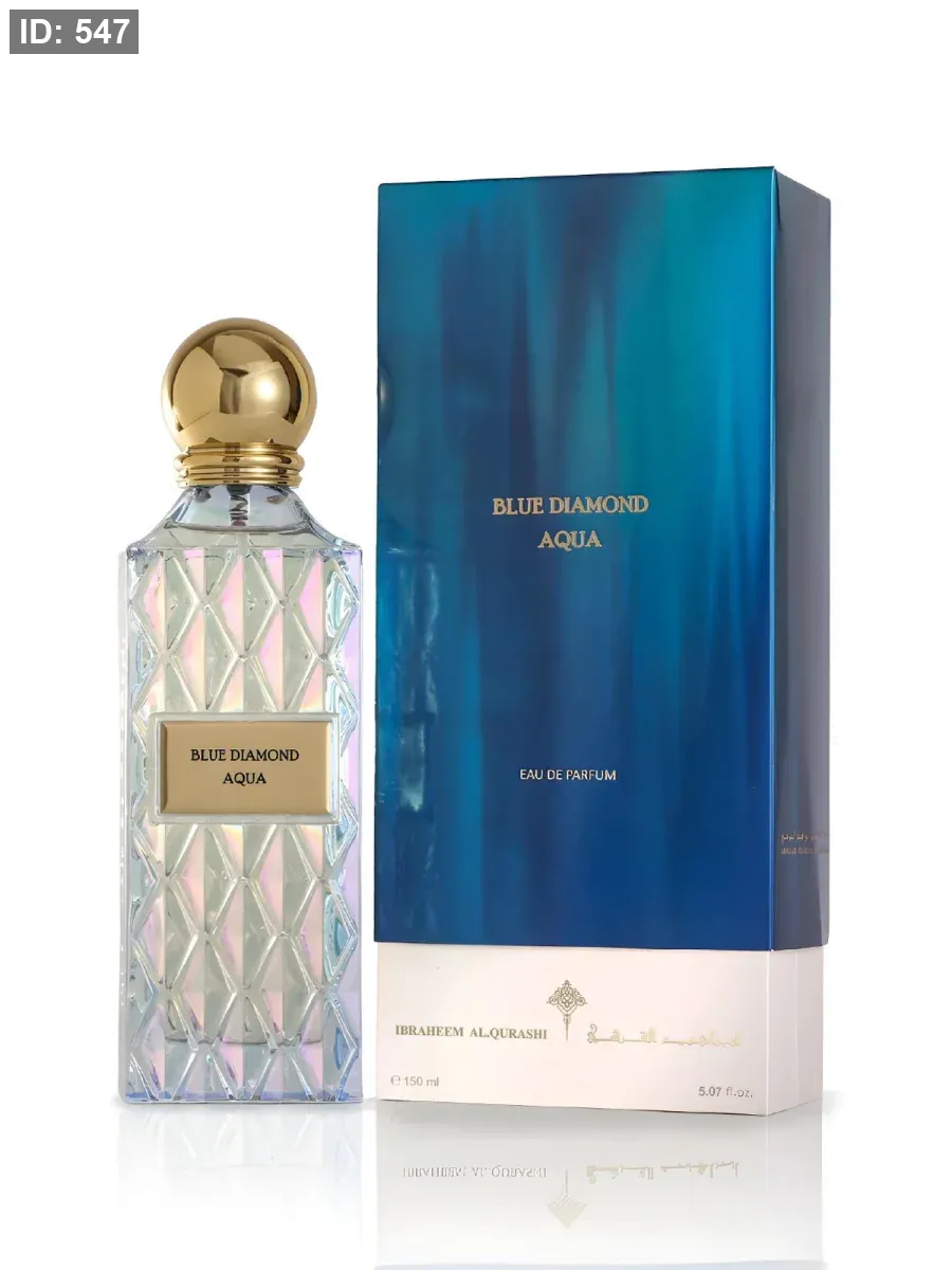 Blue Diamond Aqua Ibraheem AlQurashi عطر أروماتك - مائي للجنسين. Blue Diamond Aqua صدر عام 2023. إفتتاحية العطر نسيم البحر, الزعفران و البرغموت; قلب العطر الحمضيات, إكليل الجبل و الإيلنغ; قاعدة العطر تتكون من البخور, المسك و الباتشولي.