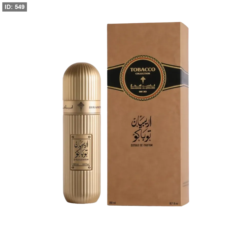 Arabian Tobacco Ibraheem AlQurashi عطر شرقي للجنسين. Arabian Tobacco صدر عام 2023. إفتتاحية العطر التبغ, الزعفران و السوسن; قلب العطر حلوى الكراميل المملح, حبوب التونكا و الورد; قاعدة العطر تتكون من القهوه, الدخان, العنبر, الباتشولي و المسك.