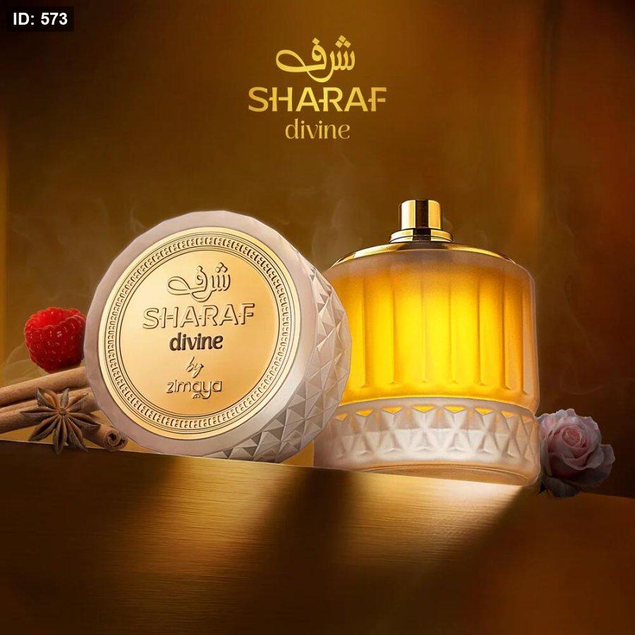 Sharaf Divine Zimaya عطر شرقي - فانيليا للجنسين. هذا عطر جديد Sharaf Divine صدر عام 2025. إفتتاحية العطر توت العليق, القرفة و البرغموت; قلب العطر التفاح, الكاراميل و الورد; قاعدة العطر تتكون من الكونياك, الفانيليا, العنبر, حبوب التونكا و الطحالب.