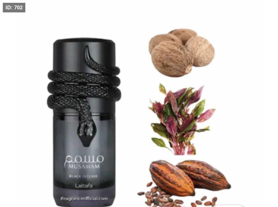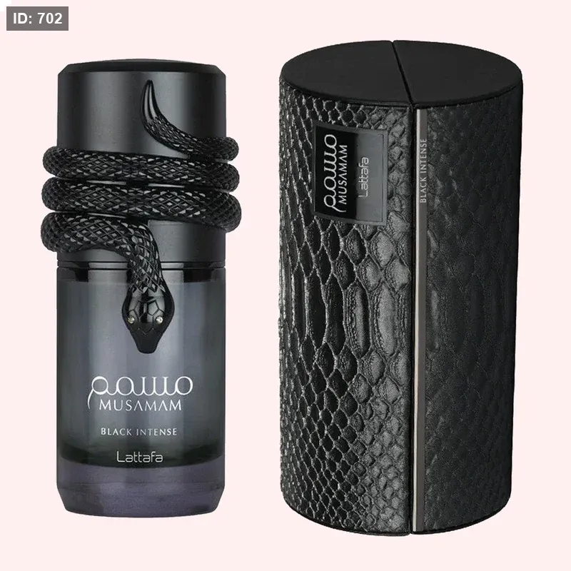 Musamam Black Intense Lattafa Perfumes عطر خشبي - أروماتك للجنسين. هذا عطر جديد Musamam Black Intense صدر عام 2025. Jordi Fernández قام بتوقيع هذا العطر. إفتتاحية العطر الخزامي, جوزه الطيب, المريمية و البرغموت; قلب العطر روزيفوليا, خشب الأرز, إبره الراعي و ماهونيال; قاعدة العطر تتكون من كوكو بالس, حبوب التونكا, أشجار القيقب, أمبروفيكس و الباتشولي.